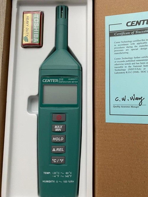 Термогигрометр CENTER 315 измеряет температуру в широком диапазоне от -20 °C до +60 °C с точностью ± 0,8 °C и разрешением в 0,1 °C. Измерение влажности прибор производит в диапазоне 0...100 % RH. С погрешностью в ± 3,0 %. Прибор оснащён совмещённым датчиком температуры и влажности. Измерение температуры занимает 10 секунд, определение влажности воздуха - 180 секунд. Прибор оснащен черно-белым ЖК-дисплеем с двумя 4х разрядными шкалами.